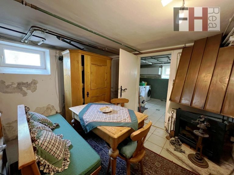 Das Haus ist voll unterkellert und dieser gliedert sich in einen Heiz- und Waschraum, einen Saunabereich mit Duschkabine, eine Werkstatt und einen zentralen Vorraum.