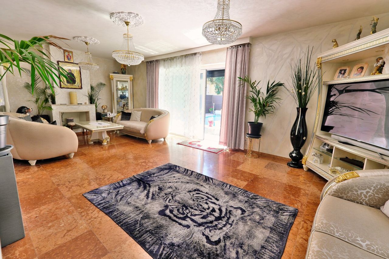 - Hochwertige Marmorböden. Marmor sogar in allen Bädern und Toiletten bis zum Plafond ausgestattet. Sogar im Waschmaschinenraum und Heiztechnikraum.