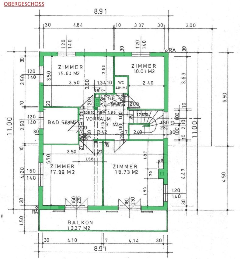4 Zimmer alle vom Vorraum getrennt begehbar 17,89 m² - 18,73 m² - 10,01 m² - 15,64 m²