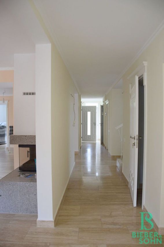 Über die Einfahrt, die genügend Platz für 4 PKWs bereit hält, gelangt man über die schöne Terrasse zum Hauseingang an der Westseite, denn ein weiterer Eingang befindet sich an der Ostseite.