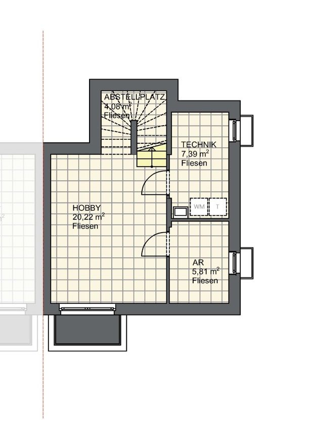 - ein 20,22 m2 großer Hobbyraum mit einem Starkstromanschluss