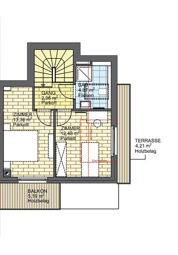 - ein weiteres Schlaf- oder Arbeitszimmer mit Zugang zur 4,21 m2 Terrasse