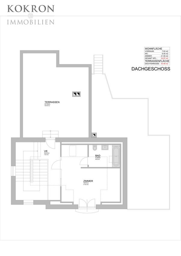 Die Wohnebene und das Dachgeschoß umfassen 123 m² Wohnfläche sowie eine Terrasse mit 45 m² plus eine Dachterrasse mit ca....