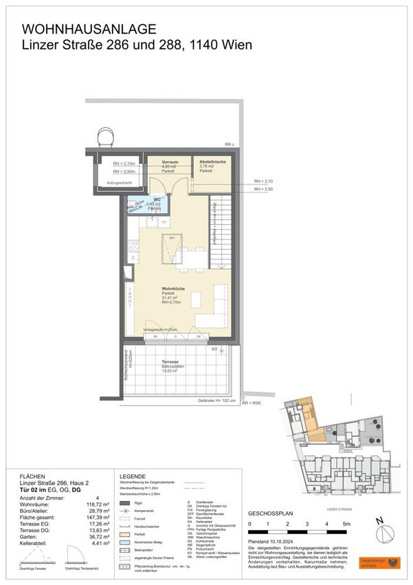 Die Fenster sind mit außenliegendem Sonnenschutz (Raffstores) ausgestattet, einzelne Fenster verfügen über Tuchbeschattung. Die Bedienung erfolgt bequem per Funkfernbedienung. Ein Lift ermöglicht die barrierefreie Erreichbarkeit aller Wohnetagen.
