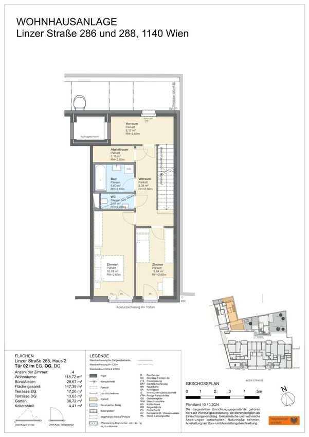 Die Wohnung wird schlüsselfertig übergeben und verfügt über Parkettböden in den Wohnräumen, eine geschmackvolle Ausstattung sowie die Verwendung hochwertiger Materialien.