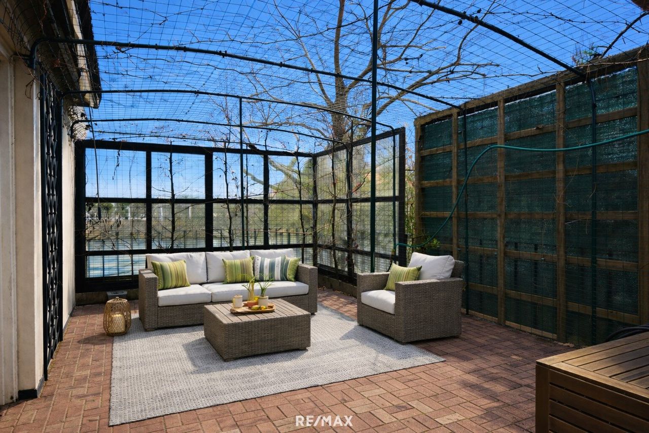 Der Außenbereich umfasst zwei großzügige Terrassen mit insgesamt ca. 42 m² sowie einen ca. 100 m² großen Garten. Die Gärten der Nachbarschaft sind von der Straße abgewandt angeordnet, wodurch ein ruhiger Grünblick und ein angenehmes Wohngefühl entstehen.