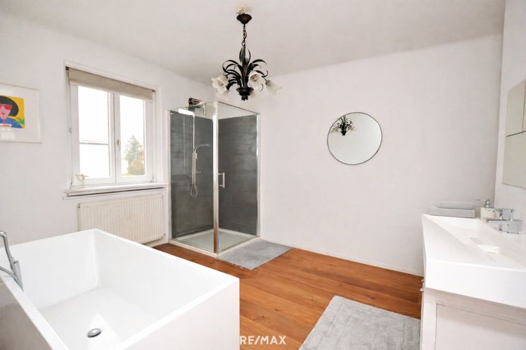 • ca. 150 m² Nutzfläche • 3 Zimmer • Vollunterkellert (3 Räume, beheizt und trocken) • Garage mit elektrischem Tor und direktem Zugang ins Haus • umfassend saniert 2017 (Leitungen, Böden, Sanitärbereiche, Küche) • neue Gas-Kombitherme (2023) • großes Badezimmer mit Badewanne, Regendusche und Doppelwaschbecken • zwei separate WCs (auf beiden Ebenen) • moderne Einbauküche