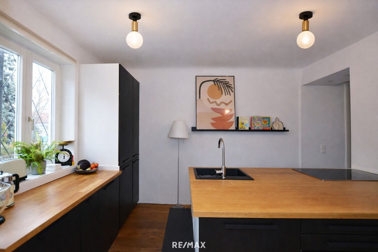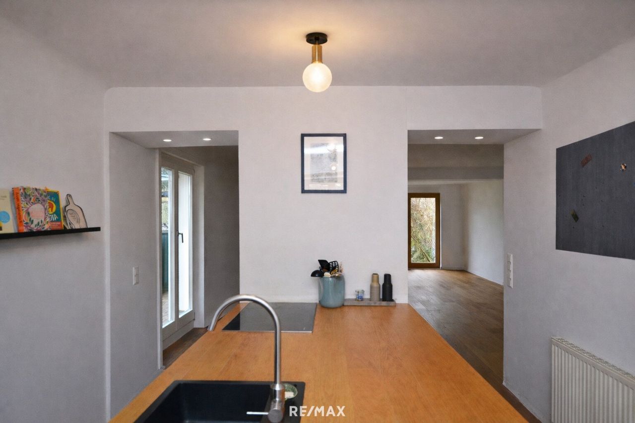 Top Features: • ca. 100 m² großer Garten in ruhiger Grünlage • zwei Terrassen mit insgesamt ca. 42 m² • offener, heller Wohn- und Essbereich mit Vollholzdielen • Kaminofen mit Backrohr...