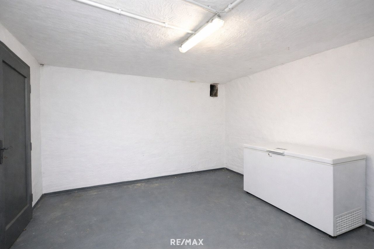 Das Haus ist voll unterkellert und bietet drei beheizte und trockene Kellerräume mit vielseitigen Nutzungsmöglichkeiten. Die Garage mit elektrischem Tor verfügt über einen direkten Zugang ins Haus.