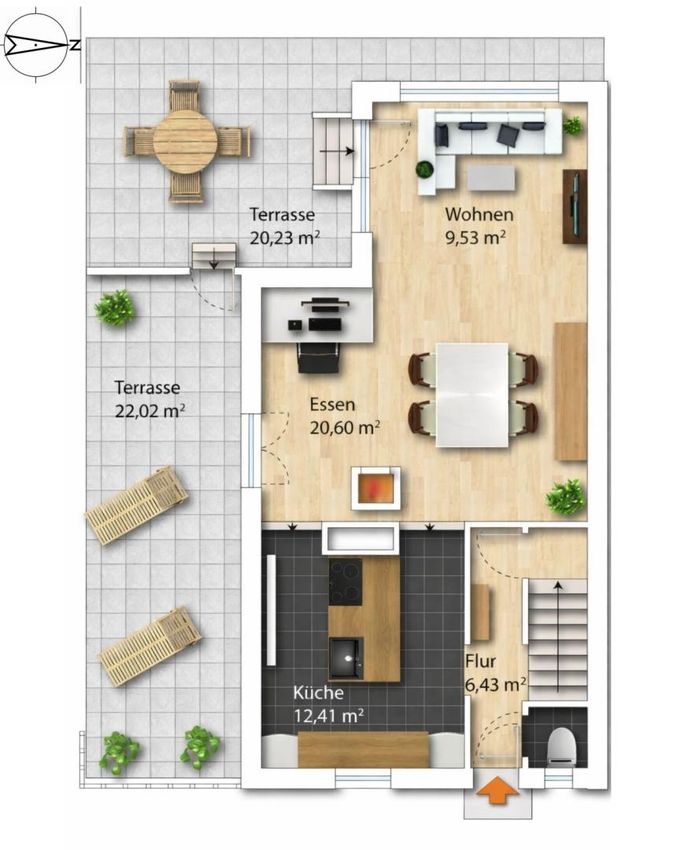 • zwei Terrassen mit insgesamt ca. 42 m²