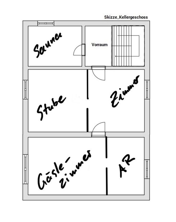 Drei gut nutzbare Räume, eine Speisekammer, ein Abstellraum sowie ein Saunazimmer – ideal für Wellness und Stauraum.