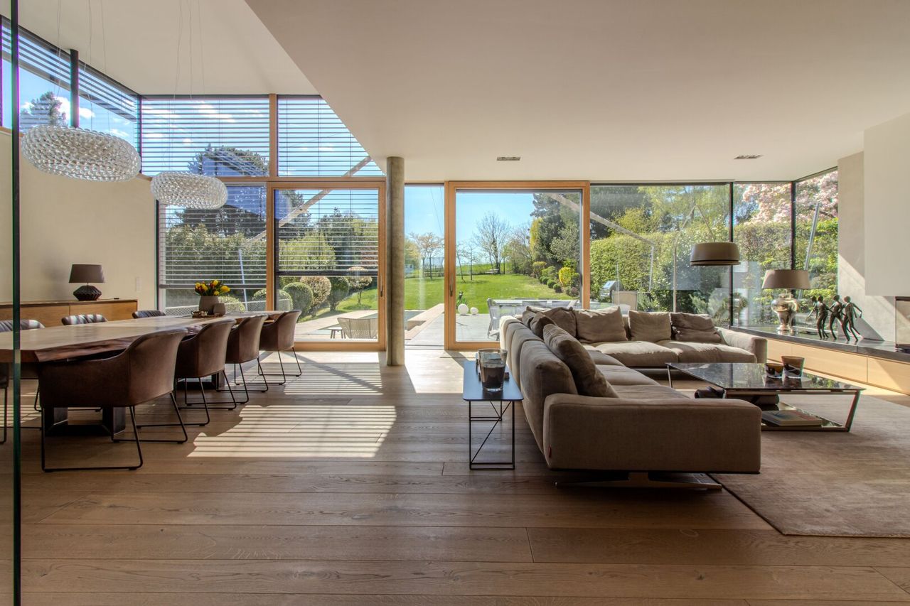 Die großzügige Liegenschaft mit einer Größe von mehr als 600 m2 Wohnnutzfläche lässt bereits beim Betreten des Gebäudes die Souveränität spüren. Von außen diskret und nahezu unauffällig, offen und großzügig - sobald Sie das Innere betreten. Zeitloses Design und erstklassige Materialien bringen Offenheit und Privatsphäre in Einklang - ohne Kompromisse.