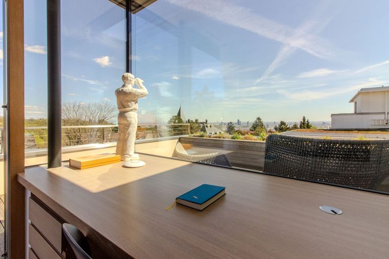 The entire top floor is designed as a private master suite, featuring a dressing room, an elegant bathroom, an office, and a private terrace – complete with a fantastic view over the city.