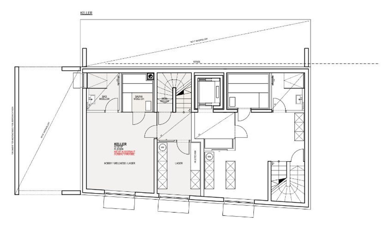 Ein geräumiger Keller mit einer Fläche von 52,92 m² bietet zusätzlichen Stauraum für Ihre Bedürfnisse. Hier gäbe es die Möglichkeit auf ein zusätzliches Bad, Sauna und einen Hobby- oder Wellnessraum.