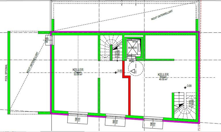Ein geräumiger Keller mit einer Fläche von 52,92 m² bietet zusätzlichen Stauraum für Ihre Bedürfnisse. Hier gäbe es die Möglichkeit auf ein zusätzliches Bad, Sauna und einen Hobby- oder Wellnessraum.