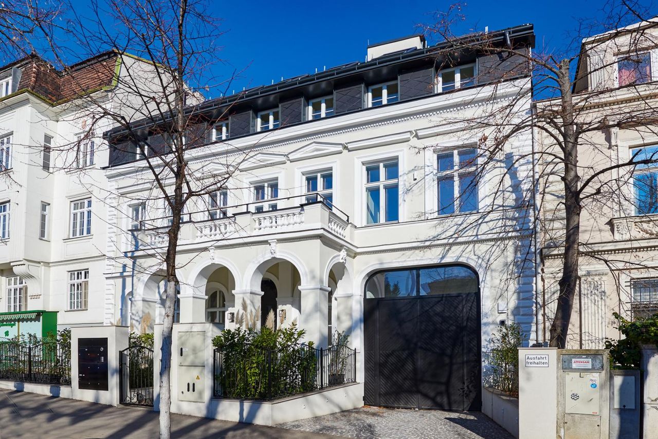Luxussaniertes Stadtpalais an Top-Adresse inmitten des 19. Bezirks: Diese gekuppelt gebaute, historische Stadtvilla bietet auf vier großzügigen, Licht durchfluteten Etagen auf über 600m² Wohnfläche viel Platz und repräsentative Wohnräume mit allen modernen Annehmlichkeiten. Man betritt das Palais über ein imposantes Entree mit Garderoben. Im rückseitigen Teil des Erdgeschosses liegt das helle Wohnsalon mit integriertem Esszimmer und der offenen Designerküche mit allen Geräten in High-End-Qualität. Der Wohnsalon öffnet sich über eine große, überdachte Loggia zum mediterranen Garten mit beheizbarem Pool. Alle vier Wohnetagen sind über die breite Marmorstiege sowie den modernen Personenaufzug, der alle Stockwerke anfährt, erreichbar.