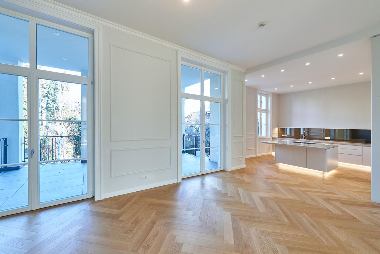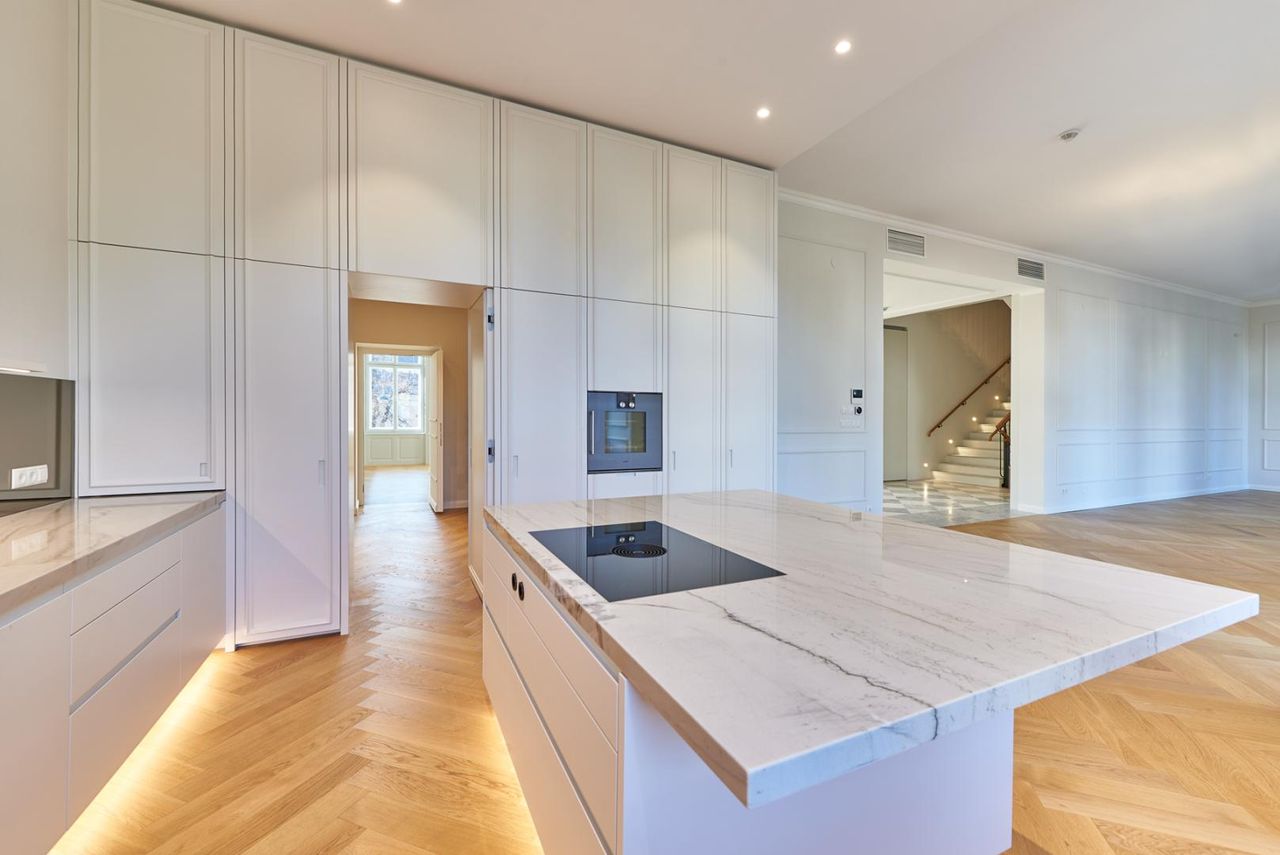 Um der glorreichen Historie dieses Gebäudes Rechnung zu tragen wurde das Stadtpalais behutsam und aufwändig saniert. Dementsprechend sucht die Ausstattung und die technische Finesse der Immobilie Ihresgleichen. Die maßgefertigte Einbauküche, der edle Marmorboden in der Eingangshalle und im Treppenhaus, Vollholzparkettböden, hochwertigste Ausstattung der Badezimmer sprechen eine Sprache der Exzellenz. Die voll klimatisierte Villa wird über eine Wärmepumpe und flächendeckende Fußbodenheizung erwärmt. Durch hohe Decken, Flügeltüren und großzügige offene Räume besonders repräsentativ und gleichzeitig unglaublich wohnlich bietet diese Villa das Beste von gestern und heute.