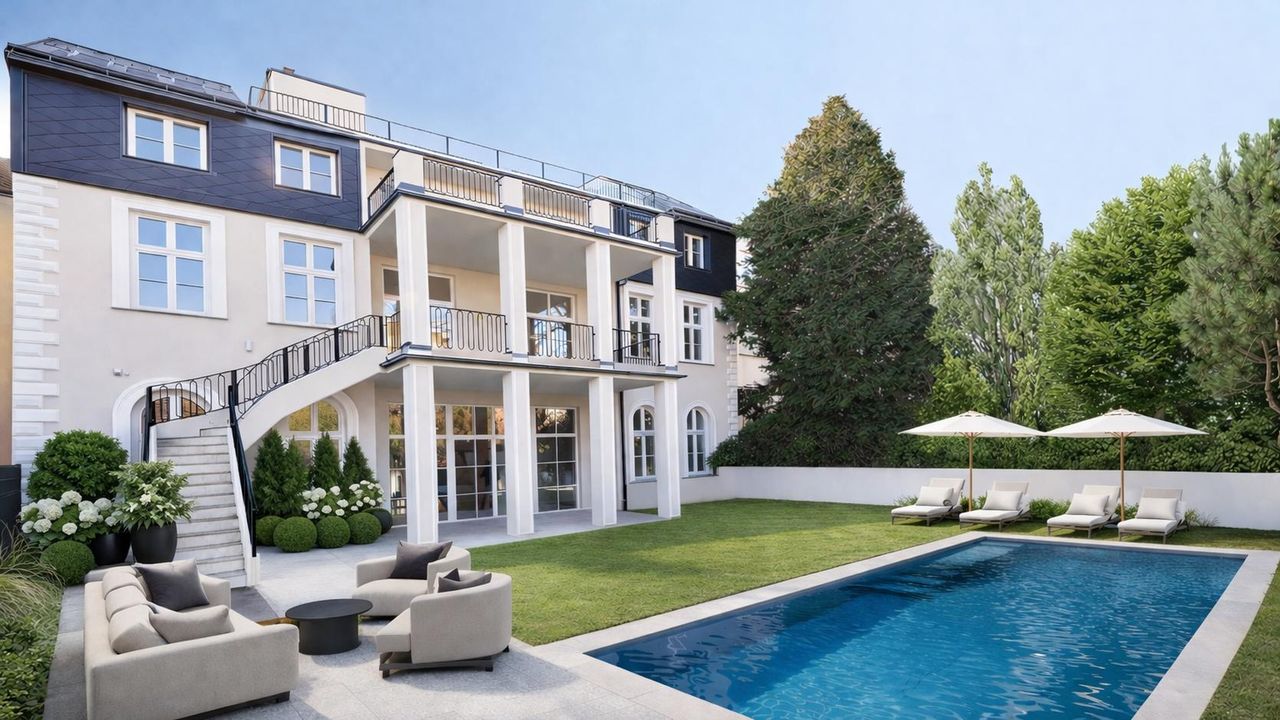 Luxussaniertes Stadtpalais an Top-Adresse inmitten des 19. Bezirks: Diese gekuppelt gebaute, historische Stadtvilla bietet auf vier großzügigen, Licht durchfluteten Etagen auf über 600m² Wohnfläche viel Platz und repräsentative Wohnräume mit allen modernen Annehmlichkeiten. Man betritt das Palais über ein imposantes Entree mit Garderoben. Im rückseitigen Teil des Erdgeschosses liegt das helle Wohnsalon mit integriertem Esszimmer und der offenen Designerküche mit allen Geräten in High-End-Qualität. Der Wohnsalon öffnet sich über eine große, überdachte Loggia zum mediterranen Garten mit beheizbarem Pool. Alle vier Wohnetagen sind über die breite Marmorstiege sowie den modernen Personenaufzug, der alle Stockwerke anfährt, erreichbar. Um der glorreichen Historie...