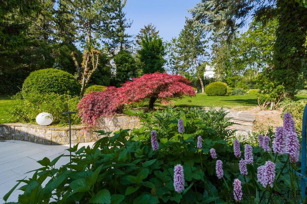 Der traumhaft gewachsene Garten ist von der westseitigen Salonseite durch seine großen Glasflächen schon beim Betreten der Villa präsent.