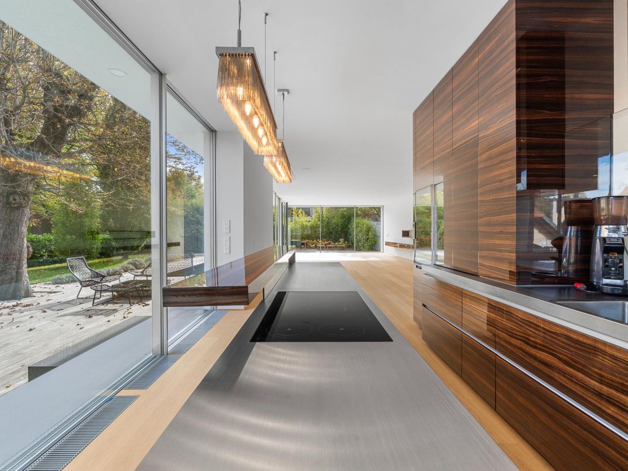 Bodentiefe Fenster und weitläufige Glasschiebetüren schaffen fließende Übergänge zwischen Innen- und Außenraum. Die exklusive Wohn-Essküche verbindet sich mit der „Privada“ – Ihrer privaten Gartenwelt – zu einem Ort der Begegnung und Entspannung.