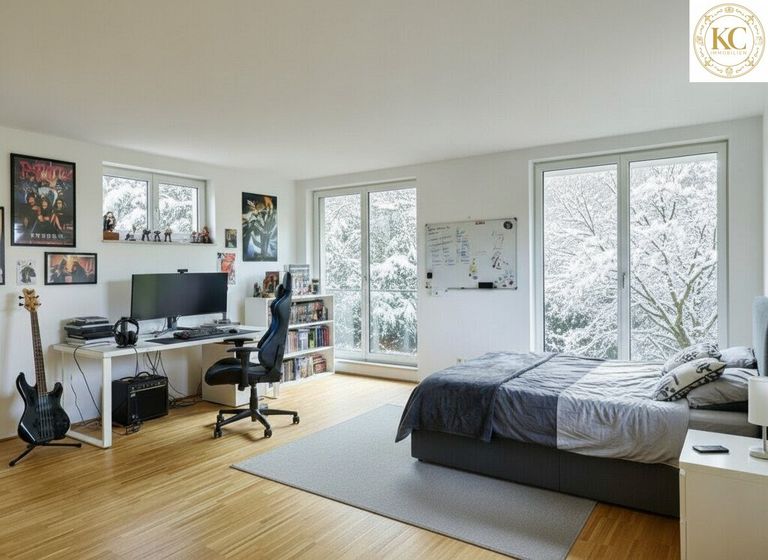 Das Haus erstreckt sich über vier Ebenen mit Lift und bietet großzügigen Platz für die ganze Familie sowie ideale Voraussetzungen für Homeoffice, Atelier, Fitness, Gäste oder persönliche Rückzugsorte. Der weitläufige Wohnbereich überzeugt mit viel Licht und Offenheit, ergänzt durch viele Räume mit flexibler Nutzungsmöglichkeit.