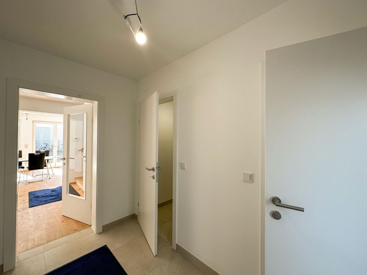 Das Haus steht auf Baurechtsgrund ist sehr großzügig geschnitten und voll unterkellert. Der Keller ist groß, hat Tageslicht und eignet sich hervorragend für Hobby/Fitness oder Homeoffice. Im Erdgeschoss befindet sich ausreichend Garderobenplatz, ein Abstellraum sowie eine Toilette und ein 48 m² Wohnesszimmer mit einer großzügigen Küche und Ausgang auf eine Terrasse in den Garten. Im Obergeschoss befinden sich drei großen Schlafzimmern und ein geräumiges Bad mit Badewanne, Dusche und eine separate Toilette. Das Dachgeschoss bietet Raum für ein weiteres Schlafzimmer mit einem begehbaren Schrankraum, Ausgang auf einer schönen Terrasse und ein großes Bad mit Toilette und Dusche.