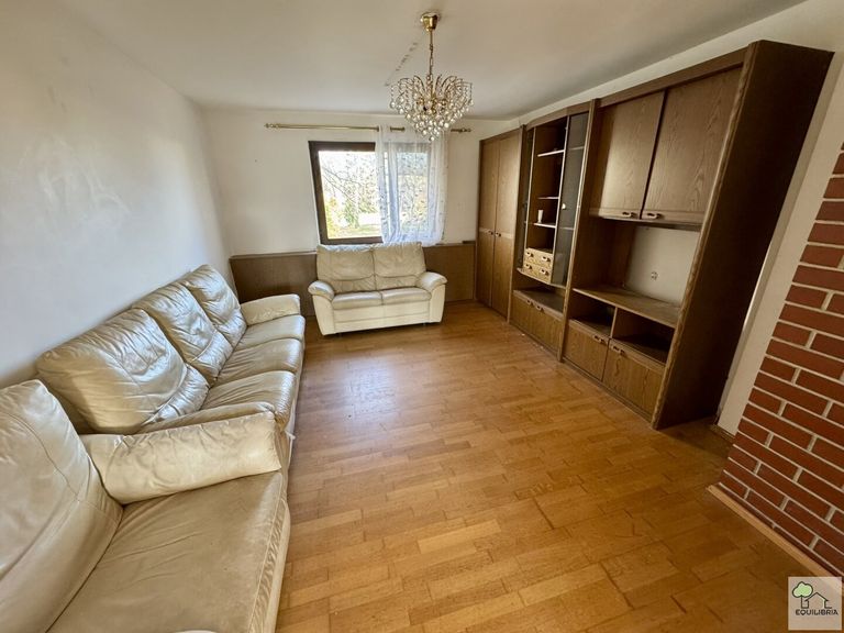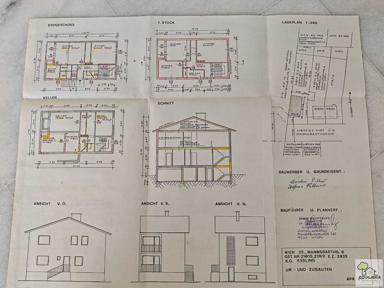 - Erdgeschoß: Vorraum, WC + Abstellraum, 2 Zimmer (eignet sich als Wohnzimmer + Esszimmer), Küche