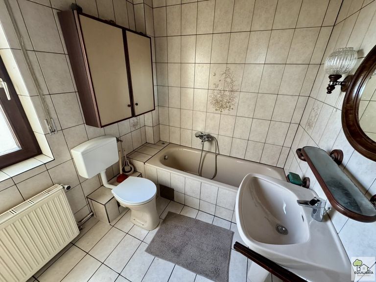 - Obergeschoß: 3 getrennt begehbare Zimmer, Badezimmer (Badewanne, Dusche, WC, Waschbecken), Gangbereich