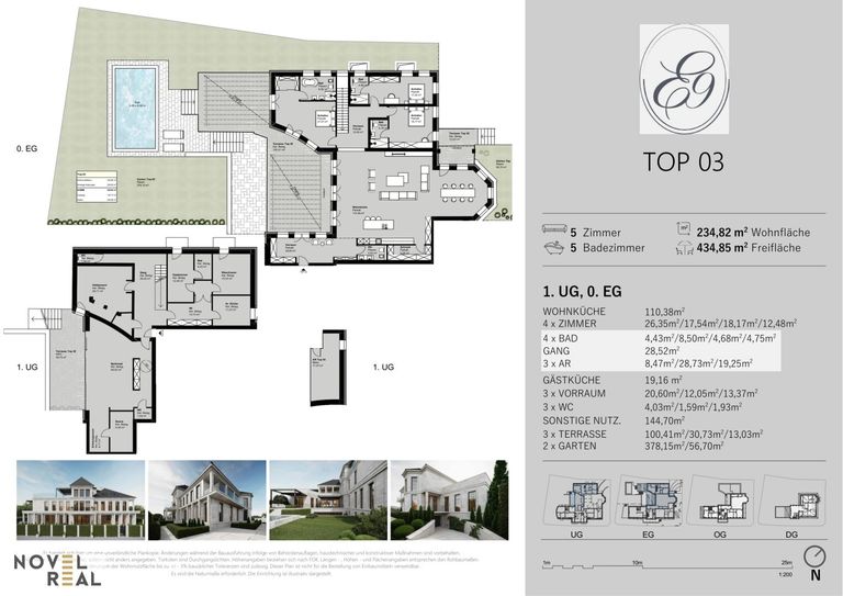 • Garten 1 (378,15 m²): Großflächiger Außenbereich – perfekt für Familien, Poolbereich, großzügige Bepflanzung.