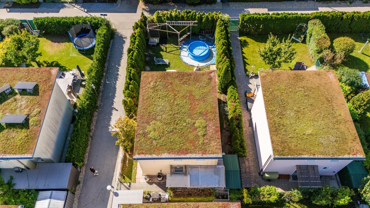 Wichtige Information: Das Haus steht auf einem Baurechtsgrundstück. Das Baurechts-Wohnungseigentum wird im Grundbuch eingetragen. Im Unterschied zur Pacht bedeutet das: Sie besitzen das Haus mit allen Rechten, inklusive Vererbung, Verkauf und Belehnung. Das Baurecht ist gültig bis zum 31.12.2073.