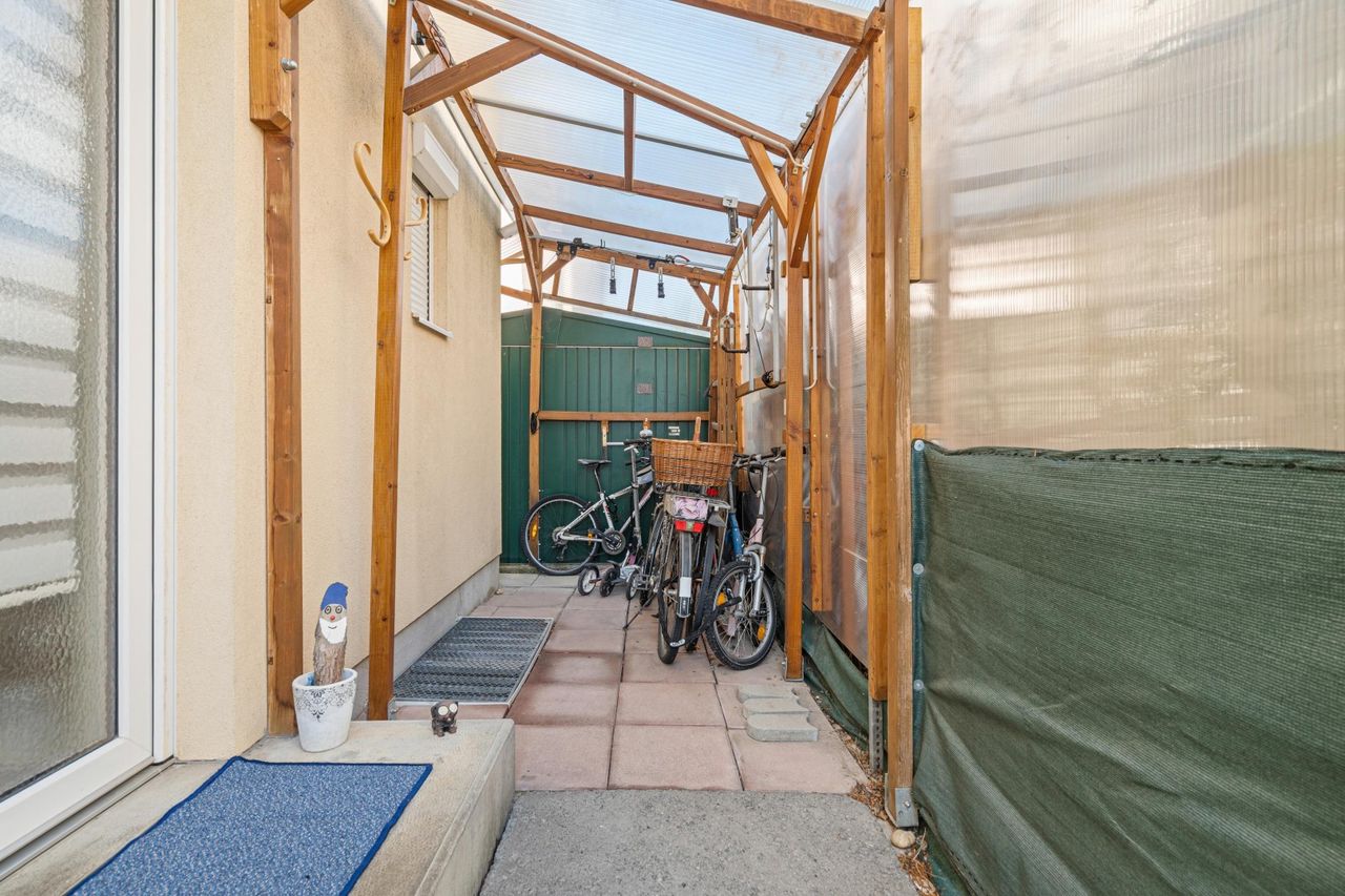 "Herrliches Kleingartenhaus im Baurechts-Eigentum" Ihr neues Zuhause am Fuchsienweg. Dieses charmante Haus befindet sich auf einem sonnigen Grundstück mit einer Fläche von ca. 247,5 m². Es wurde im Jahr 2005 errichtet und bietet Ihnen rund 76,10 m² Nutzfläche auf insgesamt drei Ebenen, inklusive eines voll ausgebauten Wohnkellers – ideal sowohl für ganzjähriges Wohnen als auch für entspannte Wochenenden im Grünen. Im Erdgeschoss erwartet Sie ein heller, offener Wohn- und Essbereich mit direktem Zugang zur großzügigen, ca. 37,25 m² großen überdachten Terrasse. Die Küche ist funktional und bestens ausgestattet. Ein WC ist ebenfalls vorhanden. Im Obergeschoss befinden sich derzeit zwei Schlafzimmer...