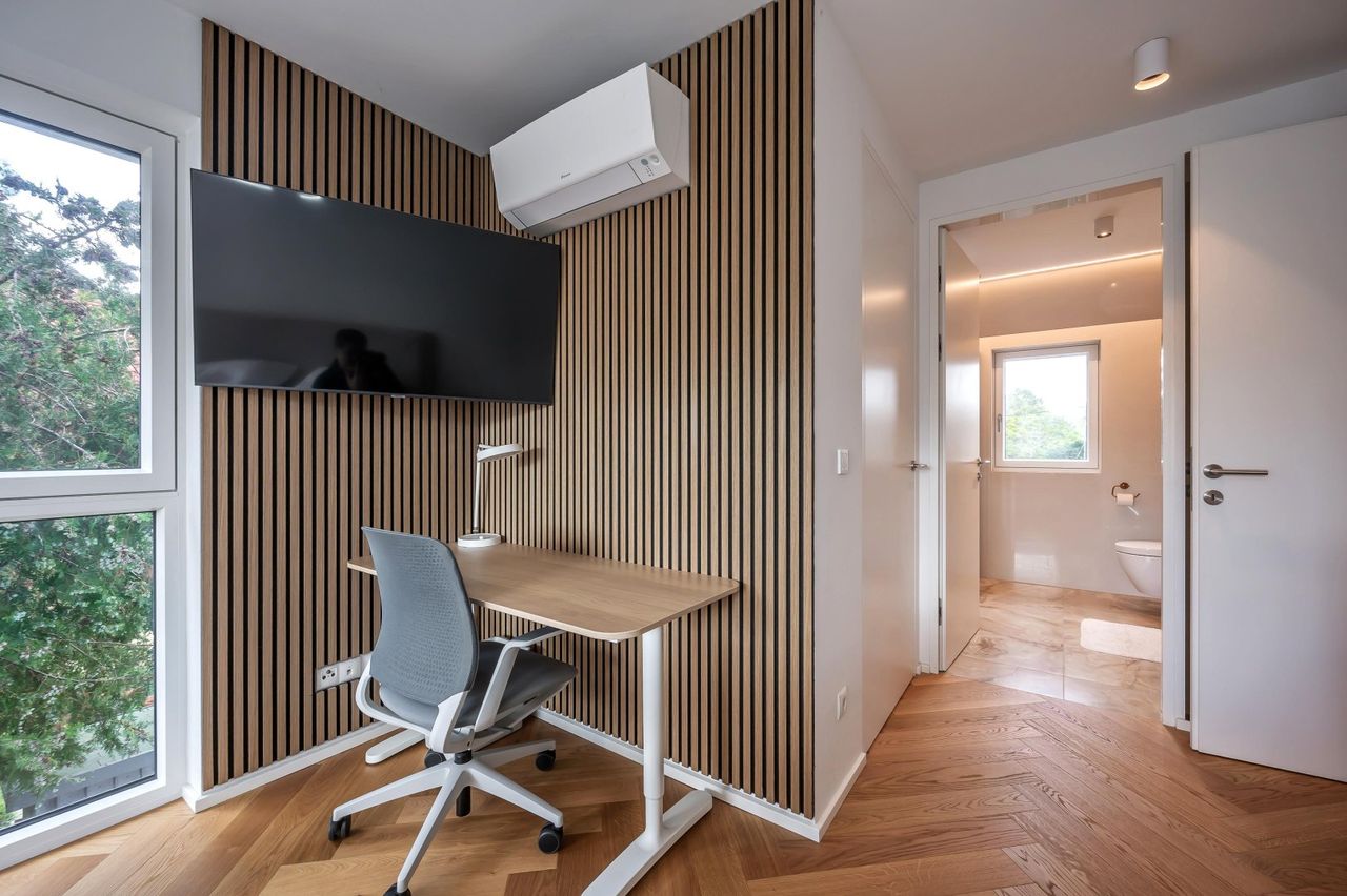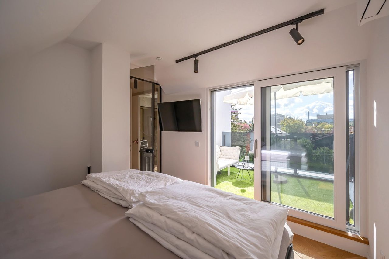 "Fast Erstbezug - nahe untere Alte Donau" Dieses neuwertige, hochmoderne und volleingerichtete Einfamilienhaus (Villa) auf Eigengrund in zentral gelegener Ruhelage mit Garten, Terrassen, Swimmingpool und Fitnesscenter wurde 2023 fertiggestellt. Raumaufteilung: Gartengeschoss: Vorraum, Wohnraum, Wohnküche, Esszimmer, WC, Terrasse, Garten mit Swimmingpool. Obergeschoss: 2 Zimmer, 2 Schrankräume, 2 Bäder mit WC`s und einem großen Balkon. Dachgeschoss: 1 Zimmer, 1 Schrankraum, 1 Bad mit WC und einer Terrasse. Untergeschoss: 1 Zimmer, 1 Waschküche/Technikraum, 1 Abstellraum, 1 Bad mit WC und ein großer Fitnessraum. Ausstattungsmerkmale: - Nowak Küche - JOSKO Fenster - LOXONE Smarthome - BoConcept - Siemens, Villeroy und Boch - KFZ Stellplatz...