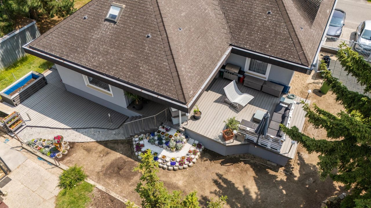 "Liebevoll gestaltetes Eigenheim!" Ihr Rückzugsort mit viel Platz! Diese Liegenschaft bietet reichlich Raum über drei Ebenen mit je ca. 128 m2, ergibt eine Wohnnutzfläche von ca. 384 m2. Das Grundstück umfasst ca. 553 m2. Über die großzügige Terrasse von ca. 60 m2 erreichen Sie den geschmackvoll gestalteten, westseitigen Wohlfühlgarten, der mit eigenem Hausbrunnen bewässert werden kann. Genießen Sie die Natur und Privatsphäre. Ideal zur Entspannung, Grillabende mit Familie und Freunden oder um Ihre grünen Daumen zu entfalten. Im beheizte Wohnkeller befinden sich auch Heizraum und der Öltank. Weitere Eckdaten: Fußbodenheizung, klimatisiertes Obergeschoß & ein klimatisiertes Zimmer im EG, zwei Bäder,...