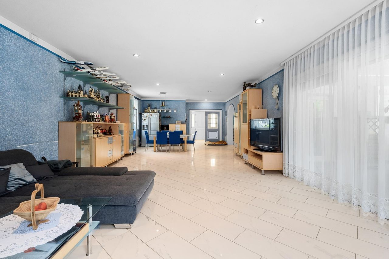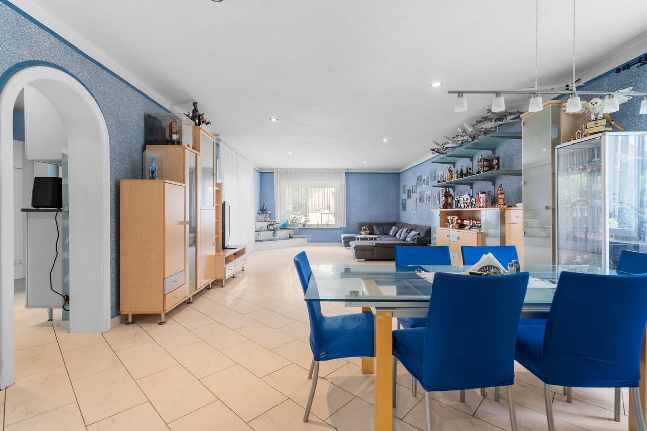 Diese Liegenschaft bietet reichlich Raum über drei Ebenen mit je ca. 128 m2, ergibt eine Wohnnutzfläche von ca. 384 m2.