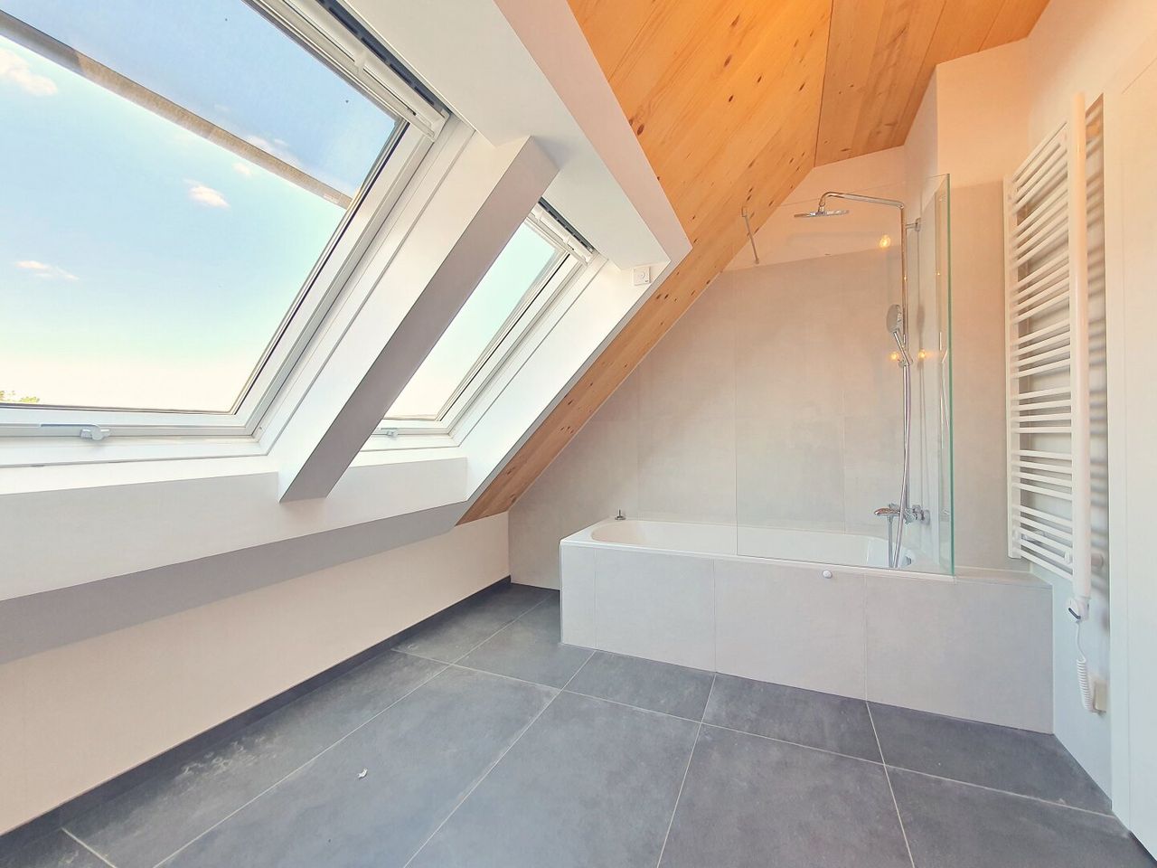 Hochwertiges Tageslicht-Badezimmer mit Badewanne, WC und WM-Anschluss