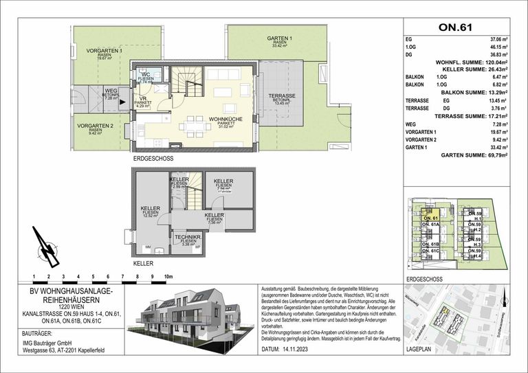 Die Reihenhäuser befinden sich im Herzen von 1220 Wien und bietet Ihnen somit eine perfekte Kombination aus urbanem Lebensstil und ruhiger Wohnlage. Hier genießen Sie die Vorteile einer lebendigen Großstadt, ohne auf die nötige Ruhe und Erholung verzichten zu müssen.