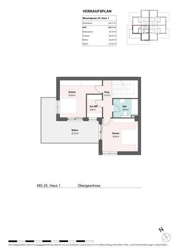 Über das Stiegenhaus gelangt man in das 1. Obergeschoss. Hier befinden sich zwei gut geschnittene Zimmer, sowie ein Badezimmer, welches mit Badewanne, WC, und einem Handwaschbecken ausgestattet ist. Eine separat begehbare Garderobe bzw Abstellraum bieten ausreichend Platz und genügend Stauraum. Ein weiteres Highlight ist der 22 m2 große Balkon auf dem Sie die Natur genießen können.