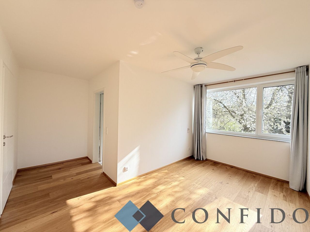 Im obersten Stockwerk befindet sich das Master Bedroom mit rund 20 m². Der vordere Bereich bietet Platz für einen möglichen Schrankraum. Ebenso verfügt diese Ebene über ein weiteres En-Suite-Bad mit bodengleicher Dusche und Toilette. Von hier aus gelangen Sie direkt auf die rund 18 m² große, südlich ausgerichtete Terrasse, die mit einem herrlichen Weit- und Grünblick begeistert.