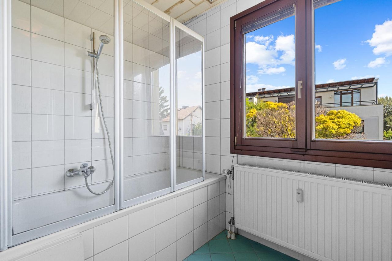 Gerade für Familien ist die Umgebung besonders attraktiv: Der Badeteich Hirschstetten liegt nur rund 300 Meter entfernt und bietet Erholung, Bewegung und Freizeitspaß quasi vor der Haustür. Die ruhige Wohnlage und die Nähe zu Grünflächen schaffen beste Voraussetzungen für ein entspanntes Familienleben mit viel Platz im Freien.