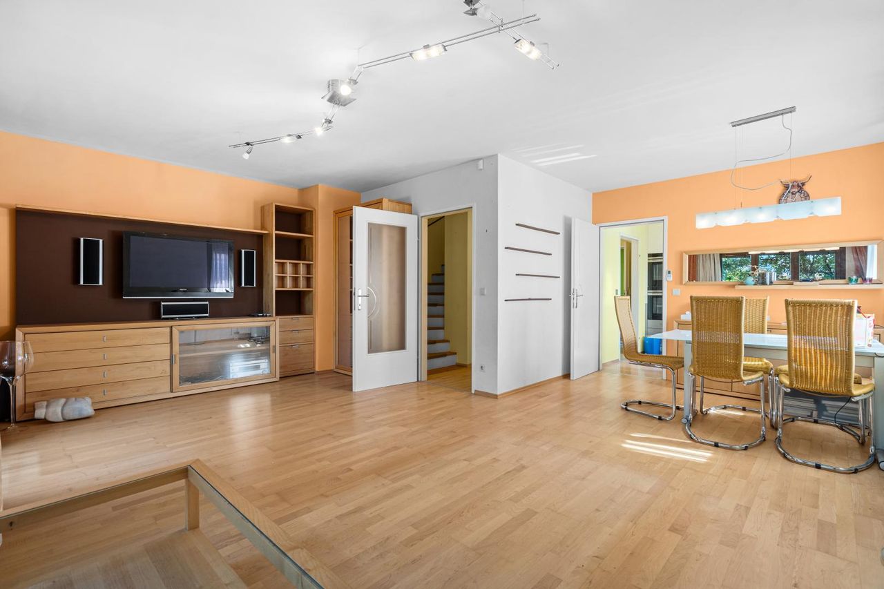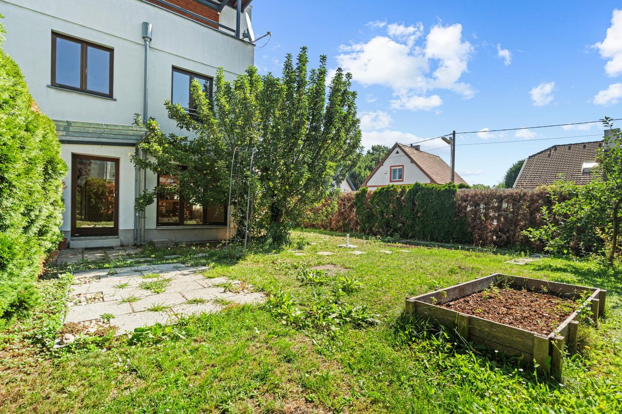 Auf rund 182 m² Nutzfläche bietet das Haus fünf Zimmer, einen Keller, mehrere Terrassen und einen großzügigen privaten Garten mit ca. 270 m² – ideal zum Spielen, Entspannen oder für gemeinsame Zeit im Freien. Die ruhige Lage im 22. Bezirk schafft ein angenehmes Wohnumfeld mit hoher Lebensqualität.
