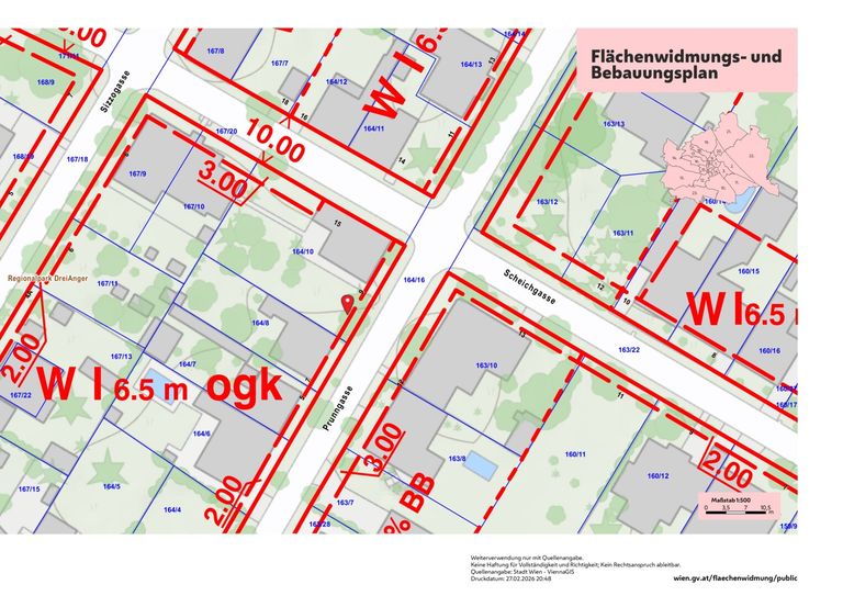 Auf der Liegenschaft befindet sich ein Altbestand. Das Grundstück bietet vielfältige Möglichkeiten für eine Neubebauung gemäß geltender Flächenwidmung: W I 6,5m ogk