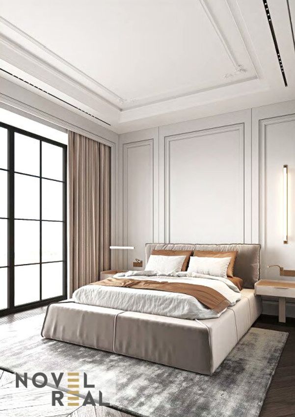 Diese exklusive Residenz besticht durch ihre zeitlos-klassische Architektur mit modernen Akzenten. Die stilvolle Fassadengestaltung wird durch symmetrisch angeordnete, bodentiefe Fenster mit feinen Sprossen stilvoll betont. Großzügige Fensterflächen durchfluten die Innenräume mit Tageslicht und schaffen eine warme, einladende Atmosphäre.