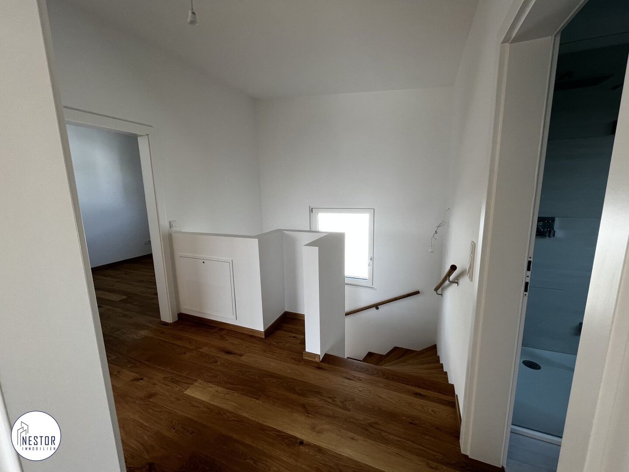 - Die Innenstiege ist mit hochwertigem Holzparkett bezogen