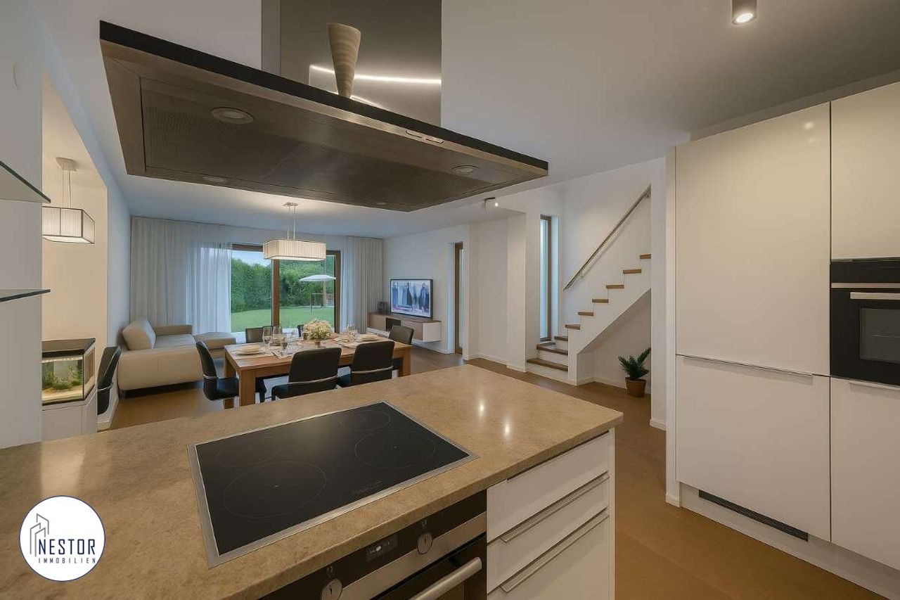 Auf rund 128 m² Wohnfläche, ergänzt durch großzügige Nebenflächen im Keller, erwartet Sie ein lichtdurchflutetes Wohnambiente mit klaren Linien, hochwertigen Materialien und einem modernen Wohnkonzept.