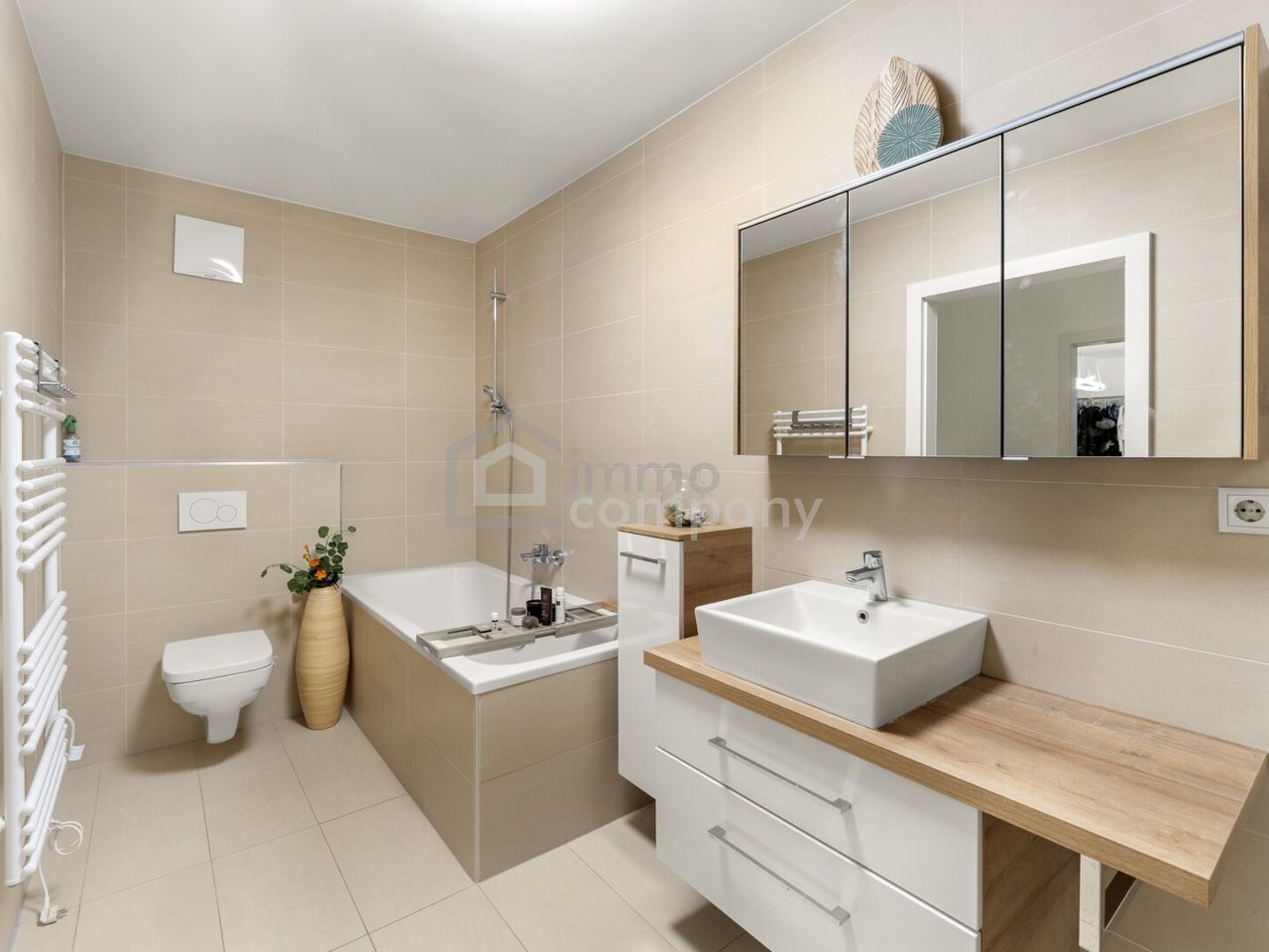 Die Ausstattung umfasst unter anderem Parkett- und Fliesenböden, eine voll ausgestattete Einbauküche sowie Fernwärme als nachhaltige Heizlösung.