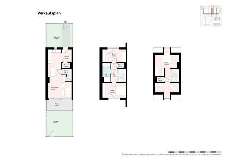 Darüber hinaus verfügen sämtliche Einheiten über Terrassen, teils Balkone sowie Eigengärten.