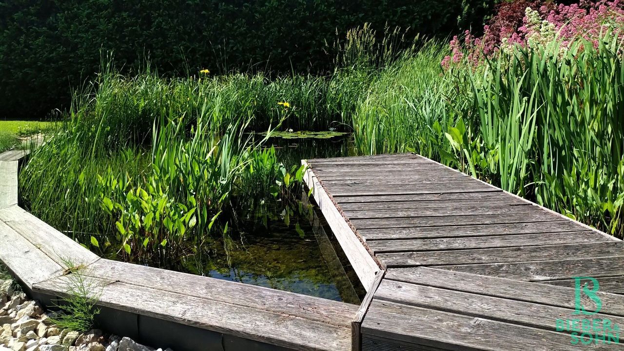 Ein schön gepflegter und nahezu uneinsichtiger Garten verwöhnt mit einem großen, beheizten Pool, zwei ca. 45 m² großen Terrassen, einer automatischen Bewässerungsanlage und zwei fleißigen Mährobotern. Die süd-westlich ausgerichtete Terrasse ist wie ein zweites Wohnzimmer. Von dort aus bietet sich ein herrlicher Blick auf das gepflegte Biotop mit Bachlauf und Uferzone samt Steg. Ein wundervoller Ort seine Seele einfach baumeln zu lassen. Zwei hochwertige Gartenhütten, eine Holzschaukel und ein Baumhaus...