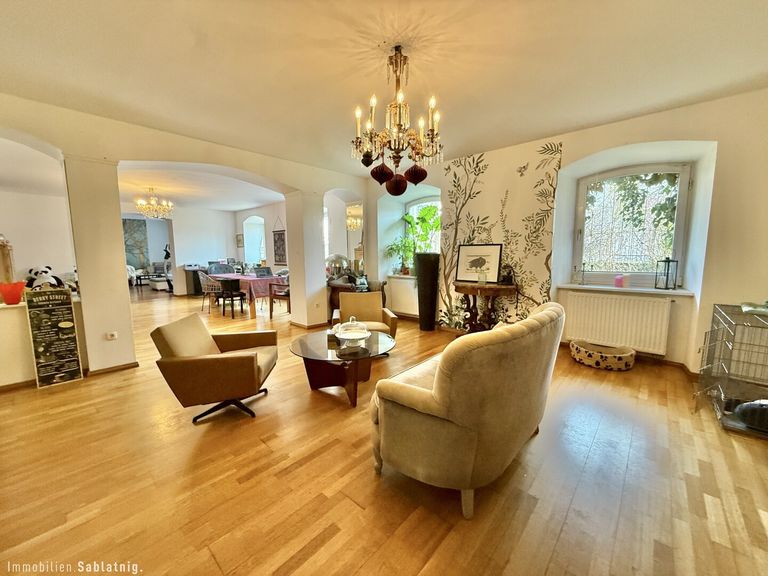 Dieses beeindruckende Anwesen bietet Ihnen nicht nur großzügige 440 m² Wohnfläche, sondern auch eine Vielzahl von Annehmlichkeiten, die das Leben hier zu einem besonderen Erlebnis machen. Mit insgesamt 10 Zimmern bietet dieses modernisierte Haus ausreichend Platz für Ihre Familie und Ihre individuellen Wohnbedürfnisse. Die offene Wohnküche ist ein wahres Herzstück...