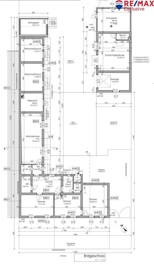 - zusätzliche Nebengebäude mit einer Fläche von 98,73 m²