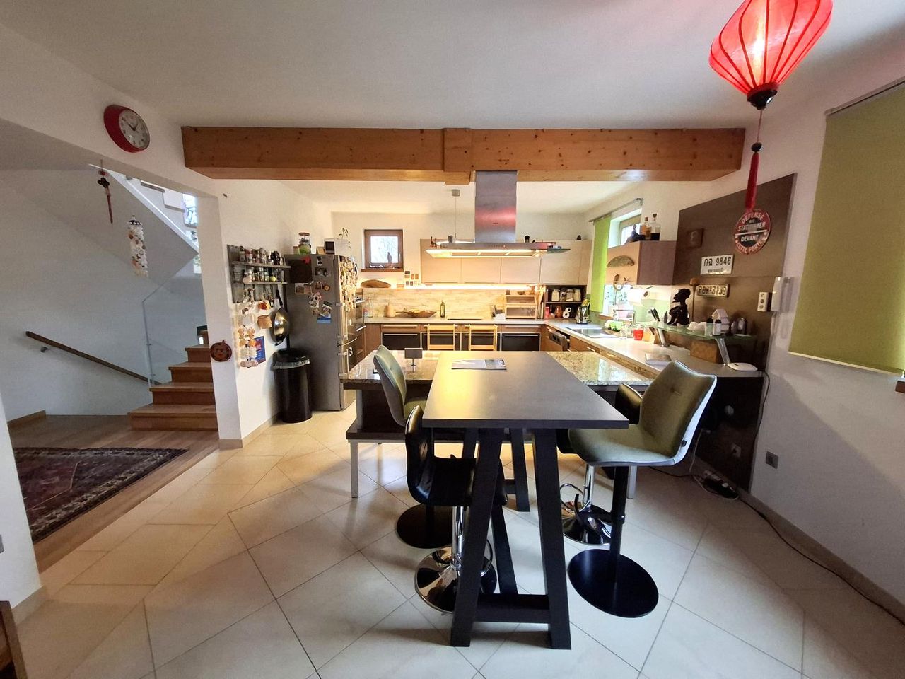 Der Wohnbereich ist großzügig und offen gestaltet. Weiters befindet sich im Erdgeschoss, das insgesamt ca. 88 m² Wohnfläche bietet, eine voll ausgestattete Küche, ein WC mit Pissoir, ein praktisches Büro sowie ein großer Eingangsbereich.